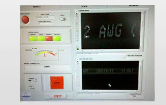 Angle Systems' Print Inspection system provides affordable quality control for your products. With our image processing software, alphanumeric print can be digitally read and checked for any defects. Using a high-speed camera, our cable print inspection system reads printed cables moving at speeds up to 500 feet per minute. Our specialized software will also identify and mark any print defects on the cable. User-friendly software and accurate print verification make our inspection system a convenient cost saving tool for your factory.